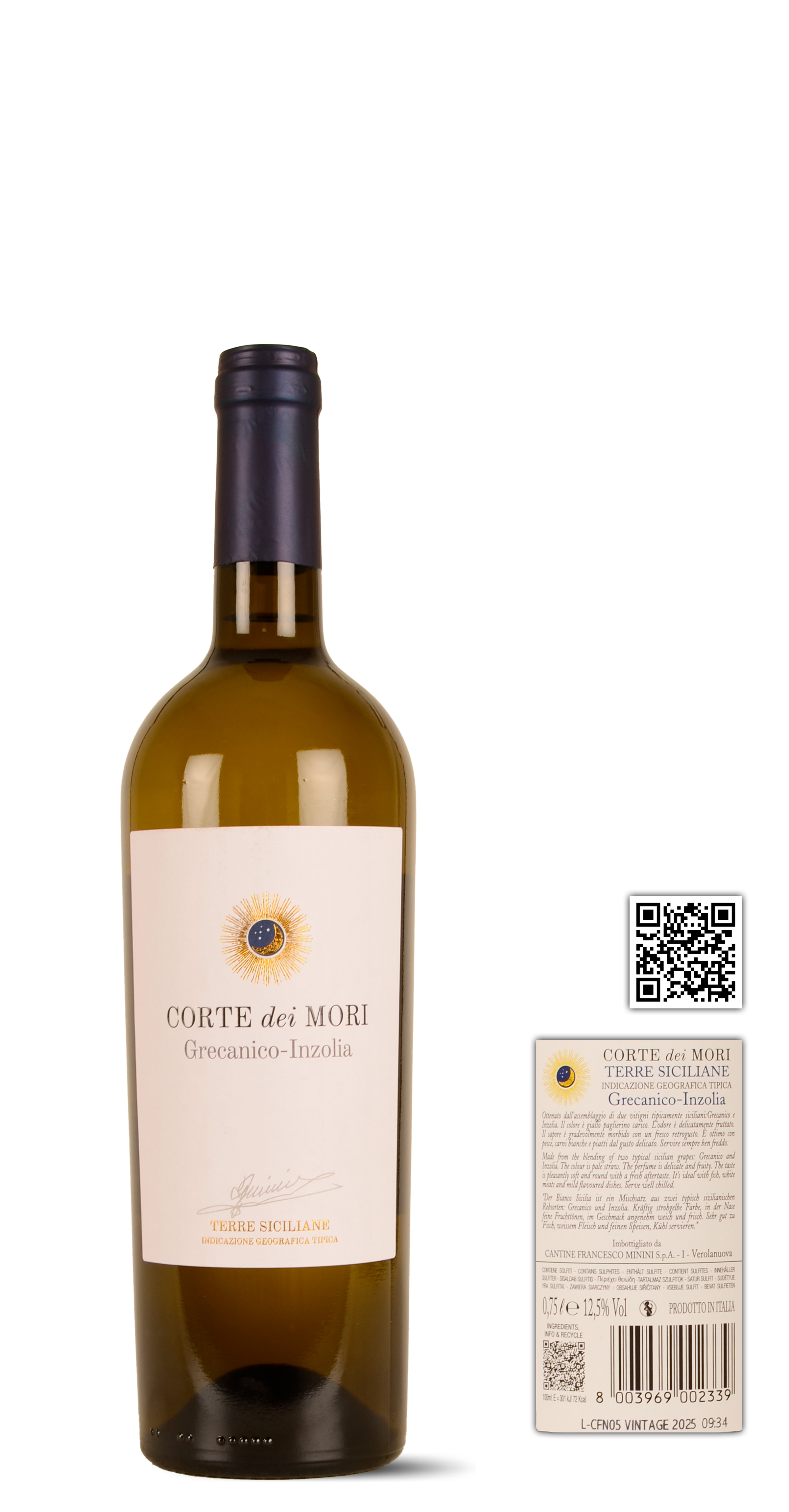 Grecanico = Garganega (Soave). Na de pluk worden de druiven apart gefermenteerd in roestvrij stalen kuipen onder lage temperatuur. Daarna rust de wijn verder en na een half jaar wordt de blend gemaakt wederom in inox vaten. Na een korte rijping wordt hij dan gebotteld.